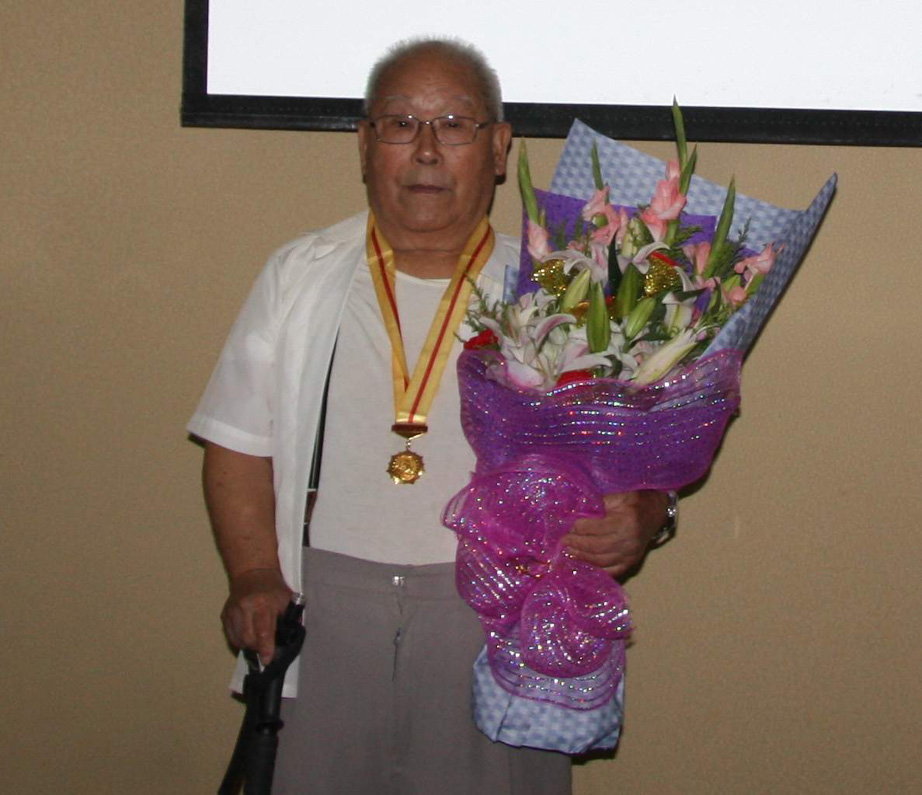 昨天一大早,沈開龍和盛雪飛就上門將王玉昆和王安泰接到單位。幾位同事趕緊幫忙,攙扶著兩位老人。公司專門為兩位老人開了一場簡短的座談會。公司黨委書記董恩和將抗日戰(zhàn)爭勝利70周年紀(jì)念章給兩位老人戴上。這是前兩天,董恩和去北京出差給帶回來的。前天,他們上門給行動不便的陳國琦、韋云長、濮滔源3位抗戰(zhàn)老兵送去了紀(jì)念章。